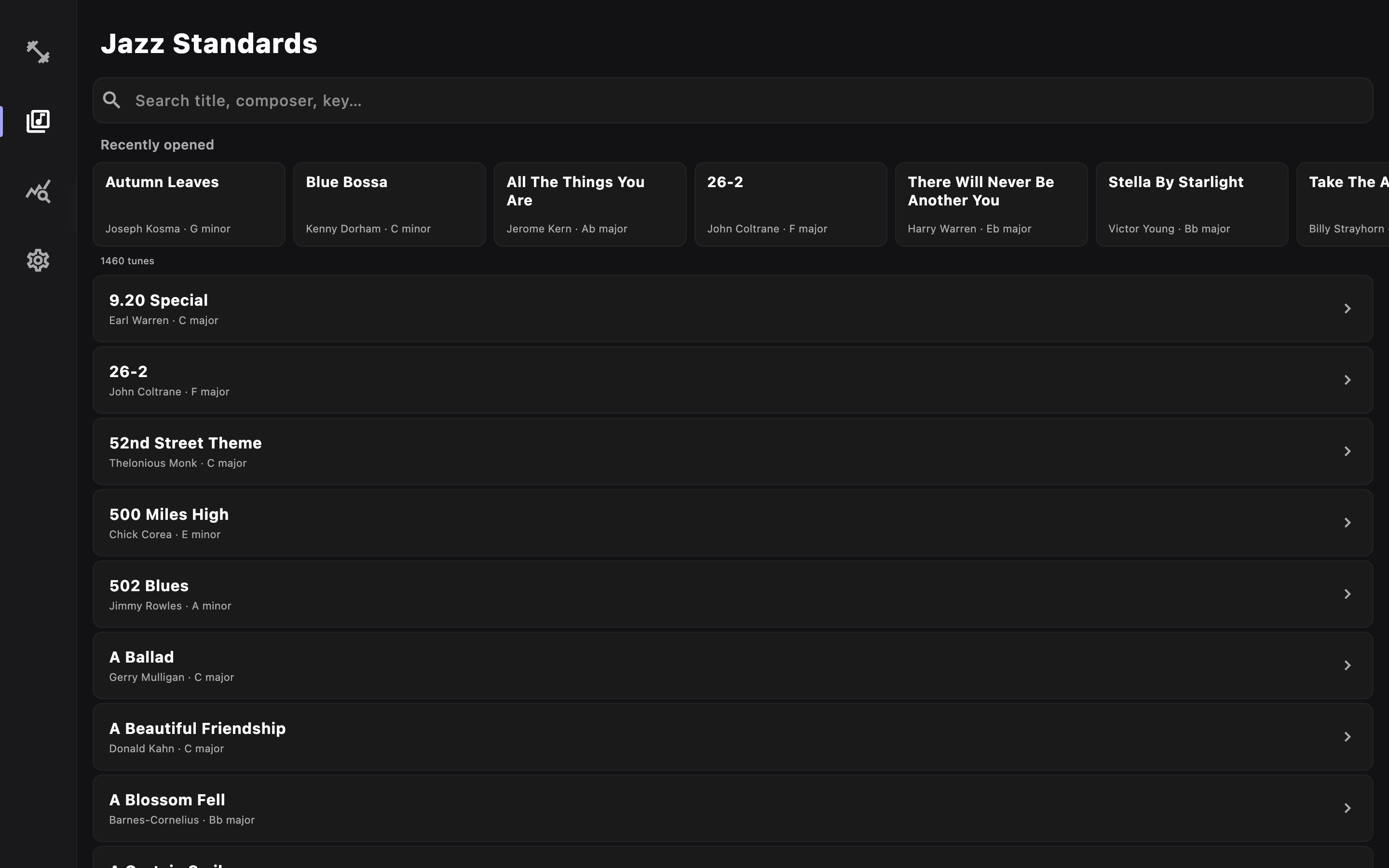 Jazz standard integration so your theory work connects to the tunes you actually play.